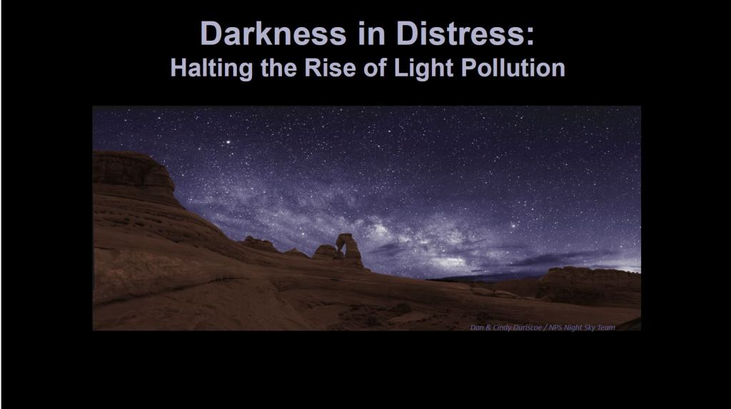 This 45-minute presentation was developed for the general public by Kelly Beatty of Chelmsford, MA — and a former member of IDA’s Board of Directors. It provides a basic overview of light-pollution issues — with special emphasis on five negatively-affected themes: (1) loss of starry nights; (2) glare; (3) ecological harm; (4) human factors; and (5) energy waste.